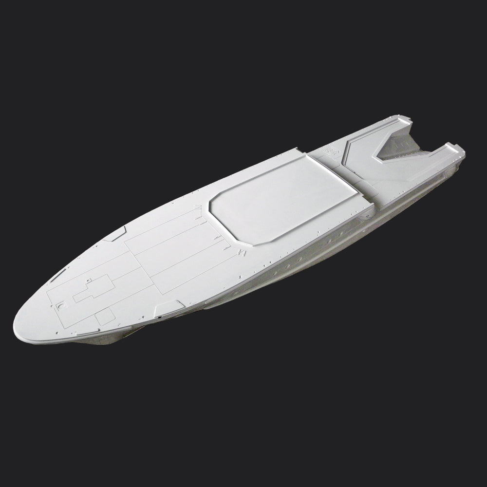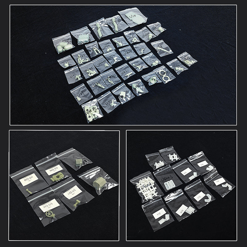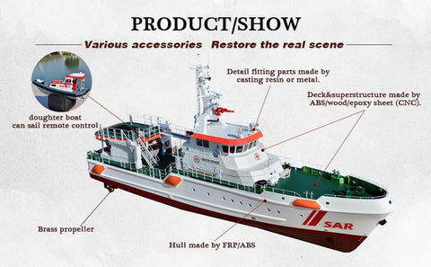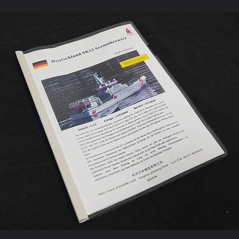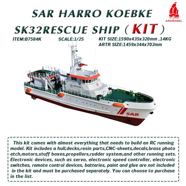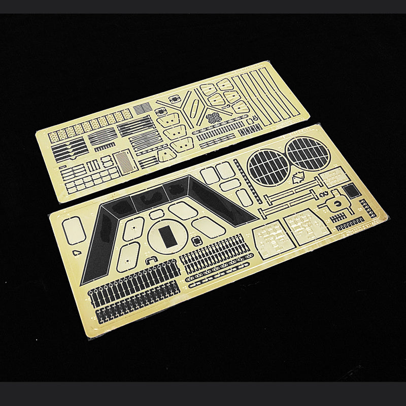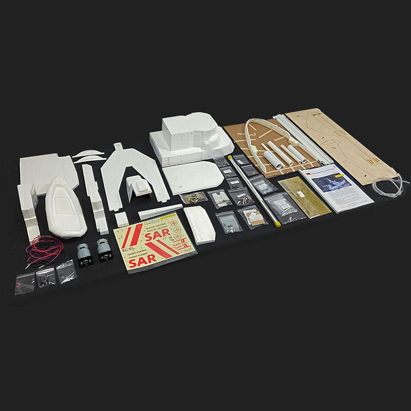 Kit includes a hull,decks,Injection parts,CNC-sheets,decals,brass photo etch,motors,stuff boxes,propellers,rudder system,and other running sets.