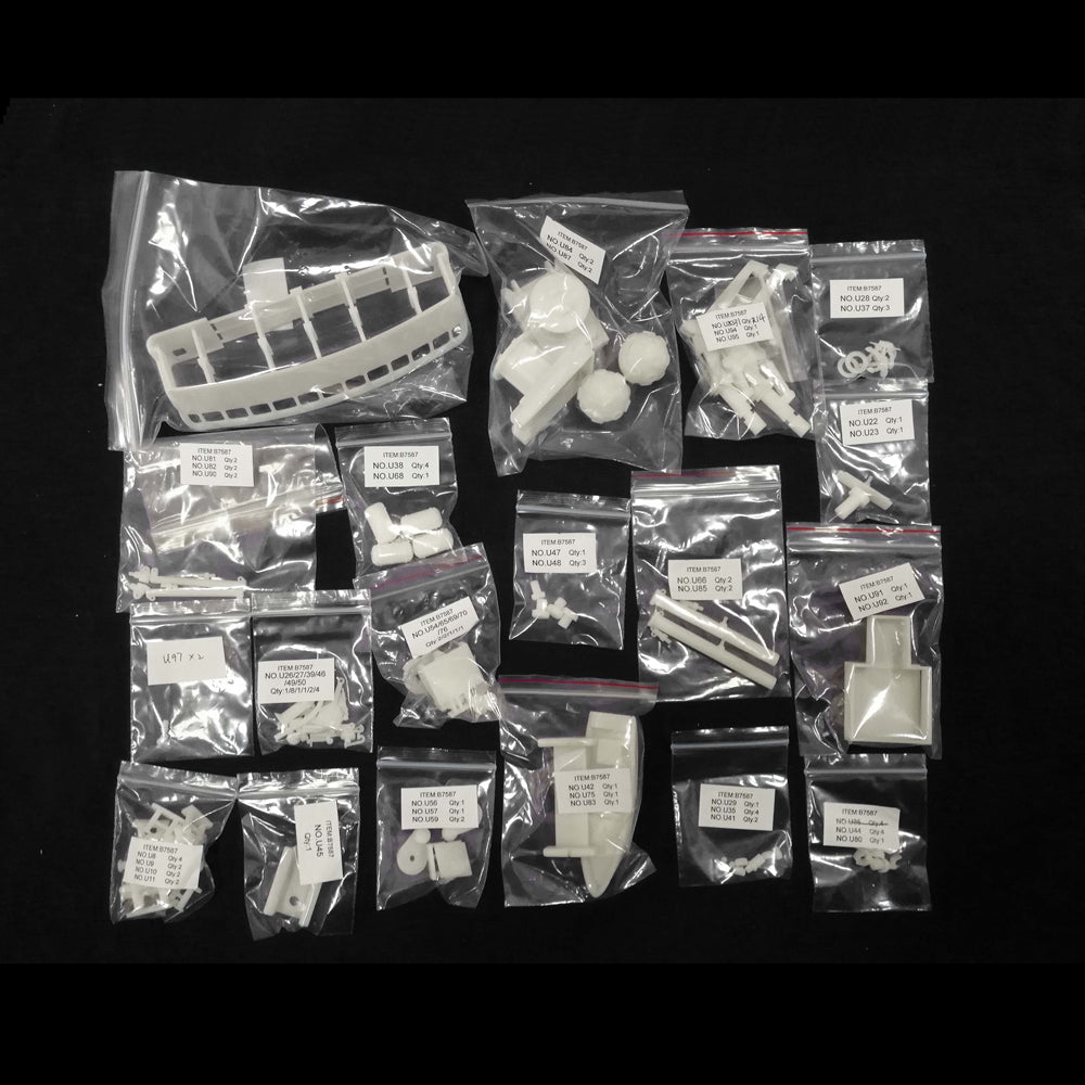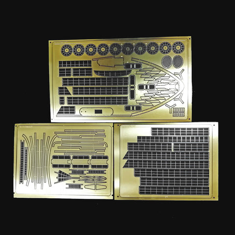 Kit includes a hull,Superstructure,Injection parts,CNC-sheets,decals,brass photo etch,motors,stuff boxes,propellers,rudder system,and other running sets.