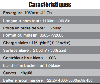 Power system: 80mm 12 blade culvert, 3665-KV2000 internal rotation motor, high-quality 100A electric control;