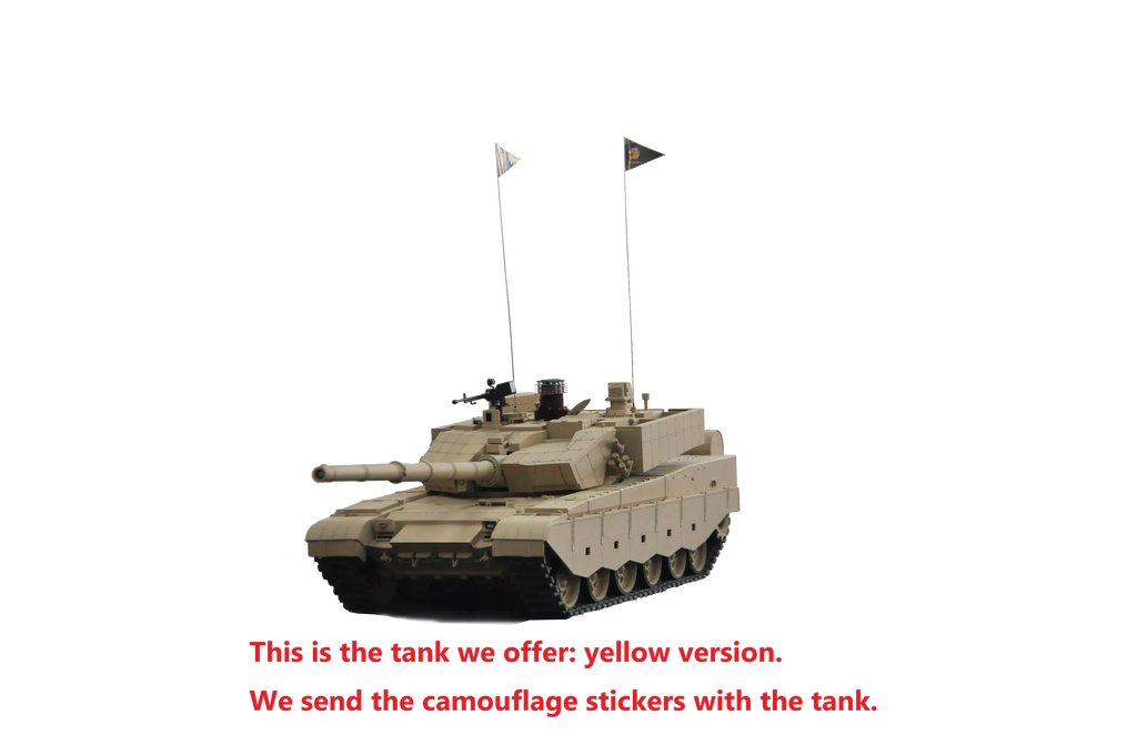 Notice: the tank we offer is pure yellow version, we send the camouflage stickers with the tank.