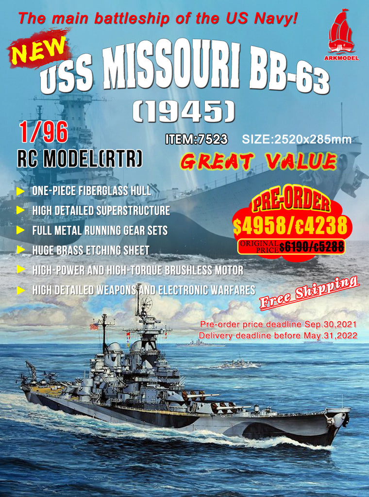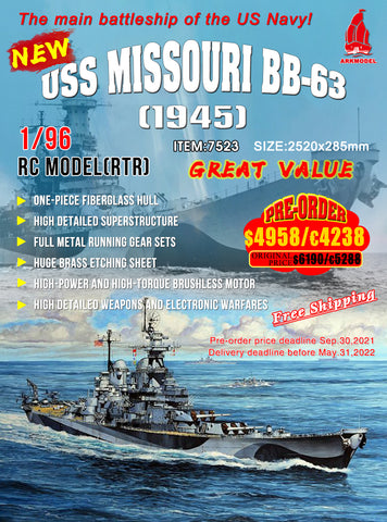 Arkmodel 1/96 USS Missouri BB-63 US Navy Main Battleship RTR No.7523