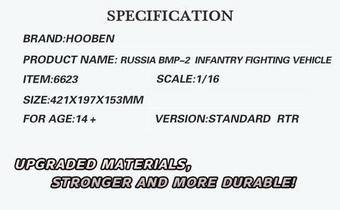 Hooben 1/16 Russian BMP-2 Infantry Fighting Vehicle RC AFV RTR Version No. 6623
