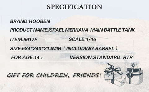 HOOBEN 1/16 Merkava Israel Main Battle Tank RC RTR Military Army Tanks Model No.6617