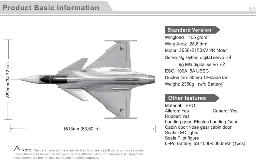 JAS-39 Gripen "Eagle Lion" 80mm Tunnel Model Aircraft Freewing Model