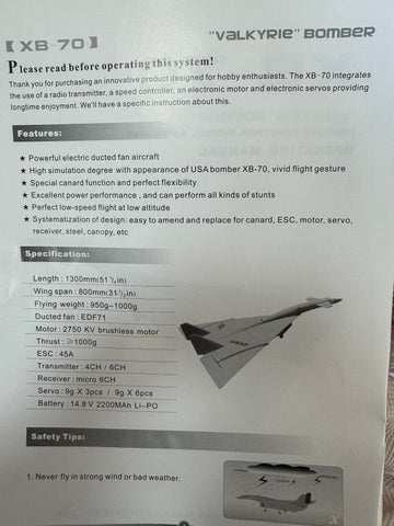XB-70 valkyrie bomber remote control model airplane,Out of print!