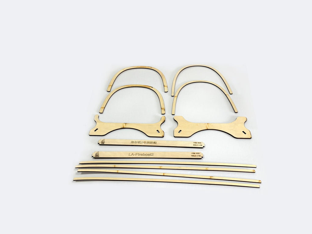 The deck and superstructure are CNC-cut ABS or wooden panels.