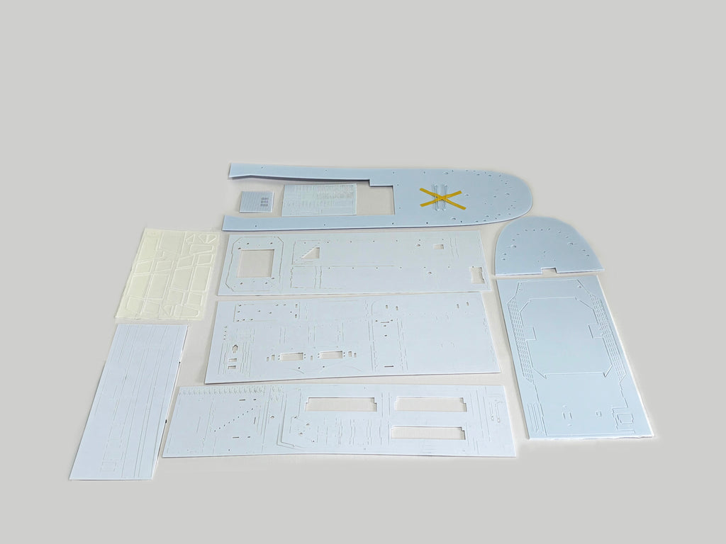 Electronic equipment such as servos, electronic speed controllers, electronic switches, remote control devices, batteries, paint and glue are not included in the kit and need to be purchased separately.