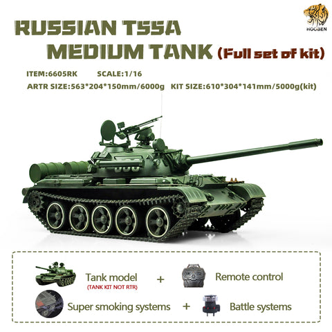 80%-100% NEW: Hooben 1/16 RC TANK T55A Russian Medium Tank KIT-in Stock in America