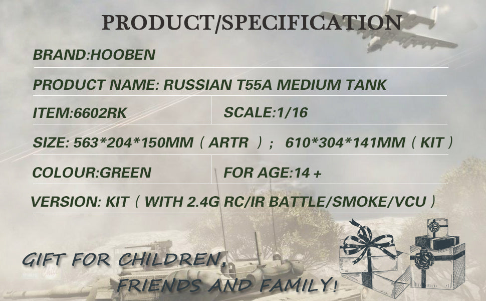 80%-100% NEW: Hooben 1/16 RC TANK T55A Russian Medium Tank KIT-in Stock in America!Only available in the United States!